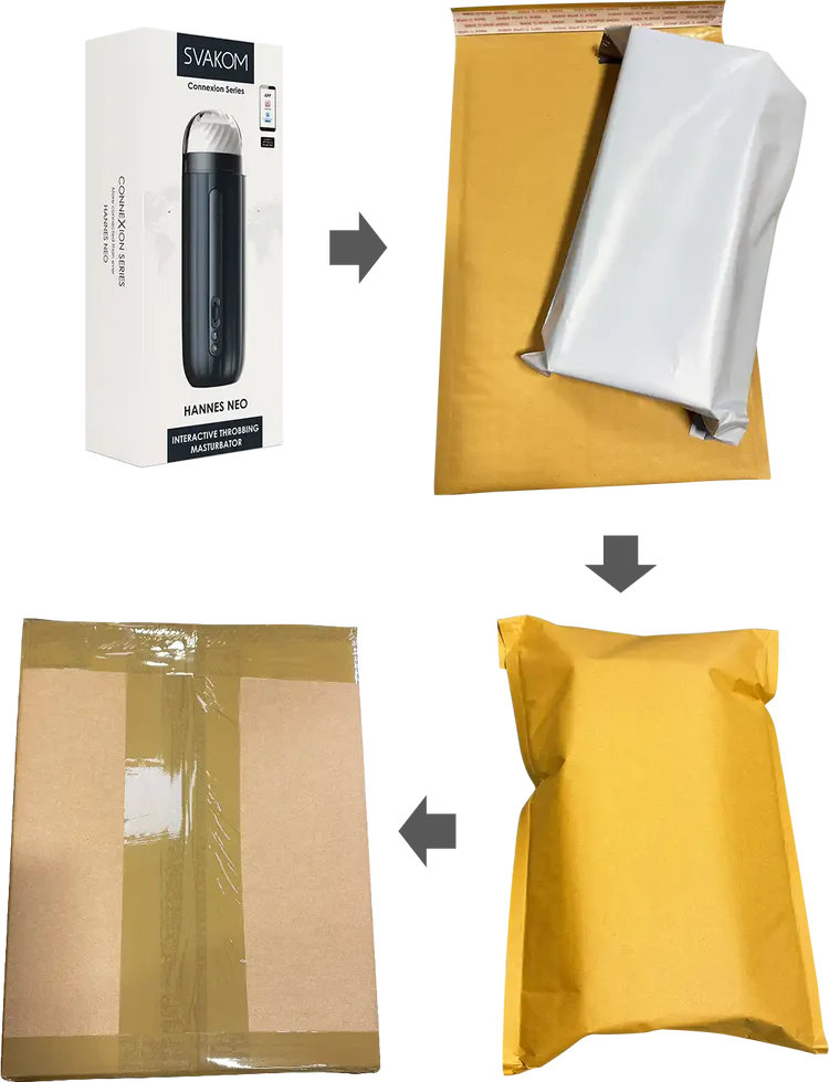 Aucune mention de marque, de produit ou de référence à SVAKOM n’apparaît sur l’emballage. Votre vie privée reste notre priorité absolue.